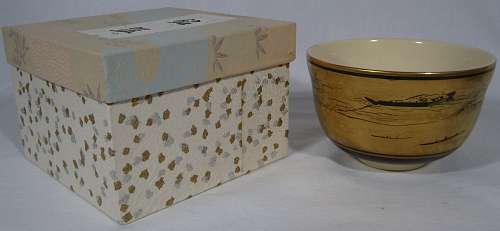 Kyoyaki Tea Bowl With Cranes On Kinran Design / Tea Bowl#260251 $78.00