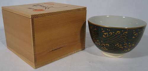 Kutani-yaki Tea Bowl With Ocean Wave / Tea Bowl#269541 $78.00
