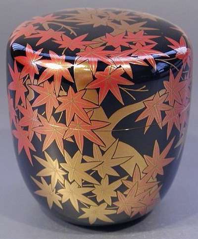 Chu Natsume Tea Caddy With Ao-Kaede Makie / Tea Caddy#232531 $600.00