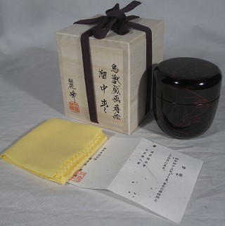 A Tea Caddy is one of basic tool for a tea ceremony.Tea caddy is neccessary for tea ceremony. There are 2 types of tea caddy. One is Natsume and another is Chaire. The Natsume is for thin tea powder and the Chaire is for thick tea. The Natsume is made of plastic, artificial wood or natural wood sometimes with lacquered pictures. The Chaire is made of potter with small bag ( Ko-Bukusa ). Some items are so beautiful and fashionable. It is presumed that they were used not only as a tea tool but their fashion item to show to their guets. We do not have enough items here due to time to prepare right now but we are planning expand our sales items. Please wait for a while with an expectation.-