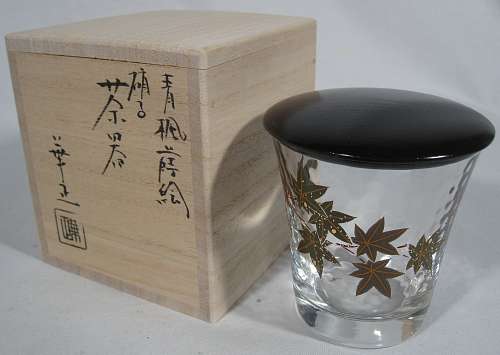 Chu Natsume Tea Caddy With Kaede Makie On Gold Leaf / Tea Caddy#216601 $98.00