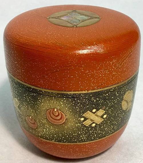 Oh Natsume Tea Caddy With Nami-guruma Makie / Tea Caddy#217871 $680.00