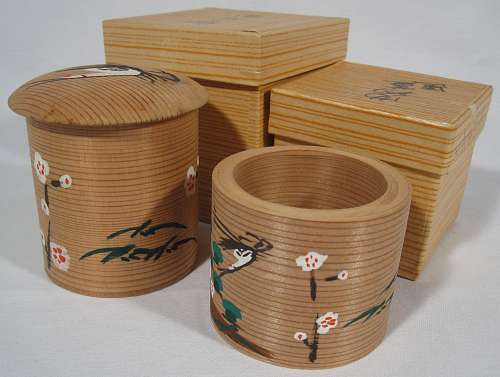 A Tea Caddy is one of basic tool for a tea ceremony.Tea caddy is neccessary for tea ceremony. There are 2 types of tea caddy. One is Natsume and another is Chaire. The Natsume is for thin tea powder and the Chaire is for thick tea. The Natsume is made of plastic, artificial wood or natural wood sometimes with lacquered pictures. The Chaire is made of potter with small bag ( Ko-Bukusa ). Some items are so beautiful and fashionable. It is presumed that they were used not only as a tea tool but their fashion item to show to their guets. We do not have enough items here due to time to prepare right now but we are planning expand our sales items. Please wait for a while with an expectation.-