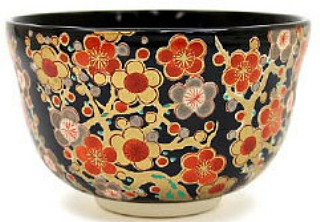 Name of item : Kyoyaki tea bowl with full of Ume design in black