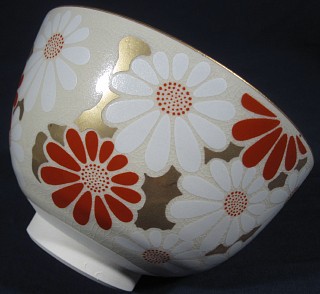 Item description : Kyoyaki tea bowl with vivid design of mum