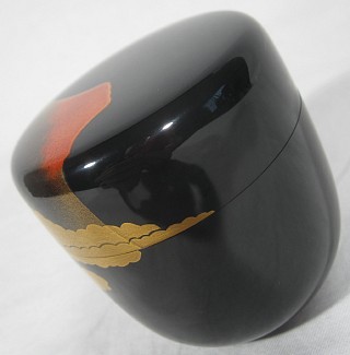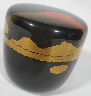 Item description : Chu Natsume tea caddy with elegant Makie design of Aka-fuji (Mt Fuji in red)