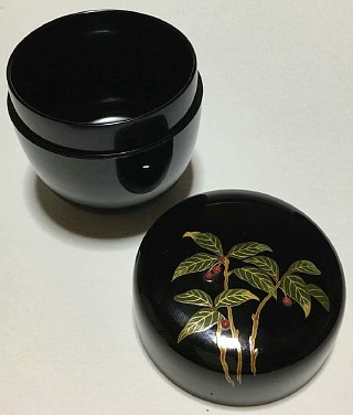 Item description : Chu Natsume tea caddy with elegant Makie works of Yabukoju (A Japanese Ardisia) which is accepted as an auspicious plant for new year's day