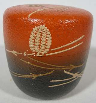 Item desciption : Negoro-nuri Natsue tea caddy with elegant Makie works of Matsube (pine needle)
