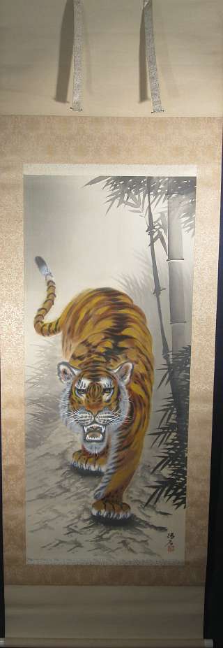 Item description : Kenpon Kakejiku with a stunning drawing of a roaring tiger