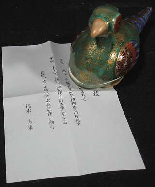 Name of artist : Ms Mirai Fukumoto who is a famoes female potter lives in Kyoto