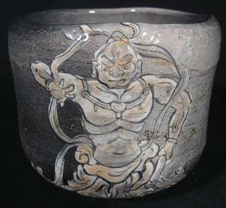 Item description : Raku-yaki tea bowl with the 2 Nio-zo (Deva king) i Tsutsu chawan style for winter
