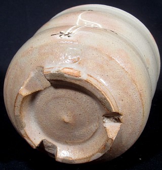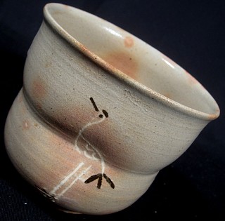 Item description : Hagi-yaki tea bowl with design of a standing crane called "Tachi-zuru"