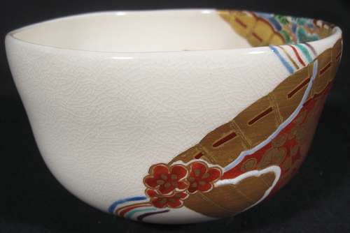 Kyoyaki Tea Bowl With Kazari-um And Shochikubai / Tea Bowl#376351 $98.00
