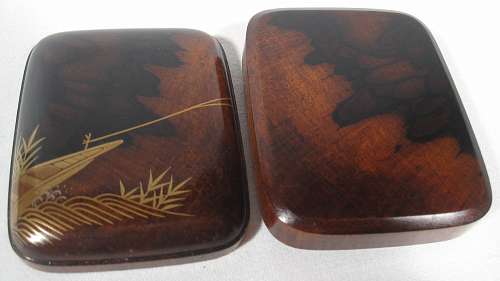 Item description : Kogo with stylish Makie works of Hikifune (tugged boat) made of Kurokaki (black persimmon)
