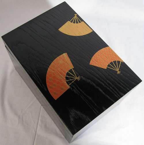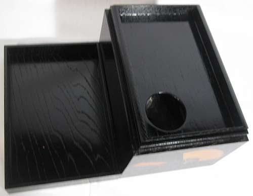 Item description : Rikyu Chabako with a tea caddy, a Chasen-zutsu and a Kogo with the same design (compressed wood powder)