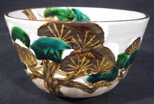 Item description : Kyoyaki tea bowl with Oimatsu (old pine tree) design in Kenzan style