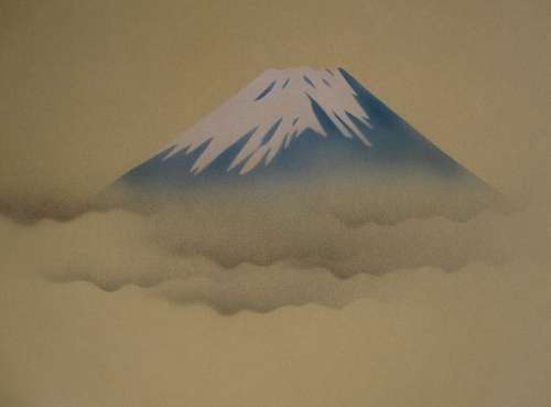 Item description : Kenpon Kakejiku with nice drawing of Samurai riding a horse andMt Fuji background