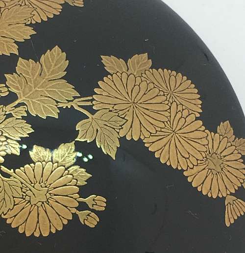 Item description : Wajima-nuri Kogo with elegant Makie works of Kiku (mum)