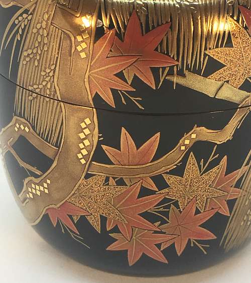 Wajima-nuri Oh Natsume Tea Caddy With Inaho-ni-Kooy Makie