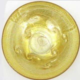 Item description : Giyaman (glass made) tea bowl in Hira-chawan in yellow with Ginsai (silver leaf)