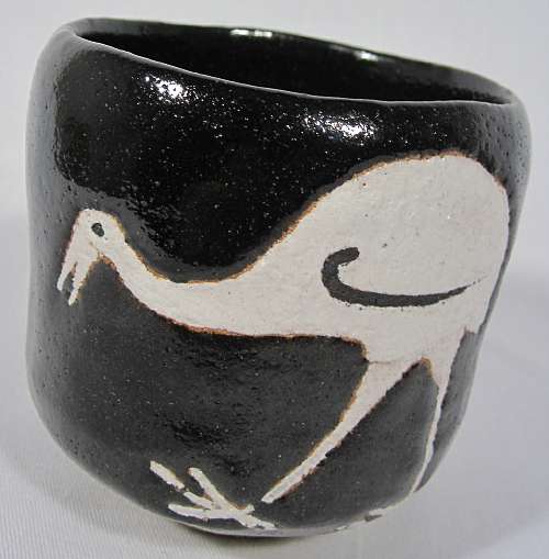 Item description : Utsushi (replica) of Kuro-raku tea bowl in Tsutsu style with Tsuru-e (design of crane) which is originally made by Donyu Raku (1599-1656)(Nonko in another name) the 3rd successor of Raku family.