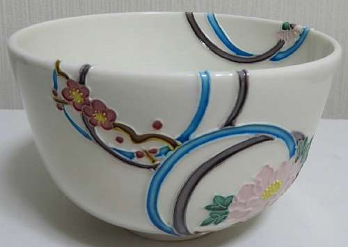 Kyoyaki Tea Bowl With Kazari-um And Shochikubai / Tea Bowl#376351 $98.00