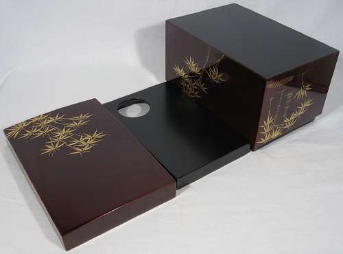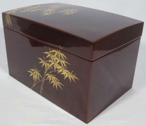 Item description : Chabako with stylish Makie works of bamboo leaves with Tamenuri (brownish black) finish