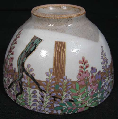 Item description : Kyoyaki tea bowl with design of Fuji (westeria) which represents a flower for June