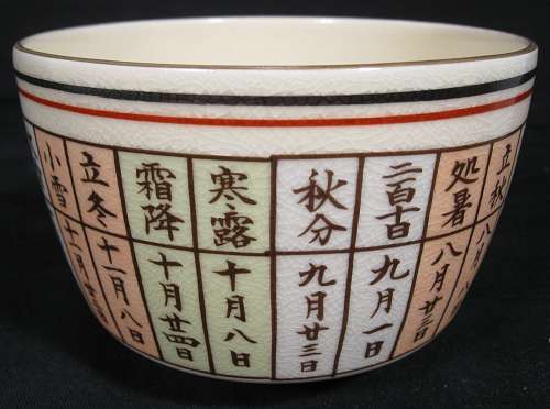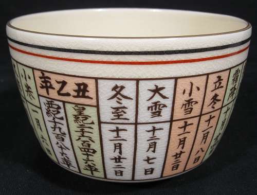 Item description : Kyoyki tea bowl with design of Koyomi (an old calendar) This is for January use