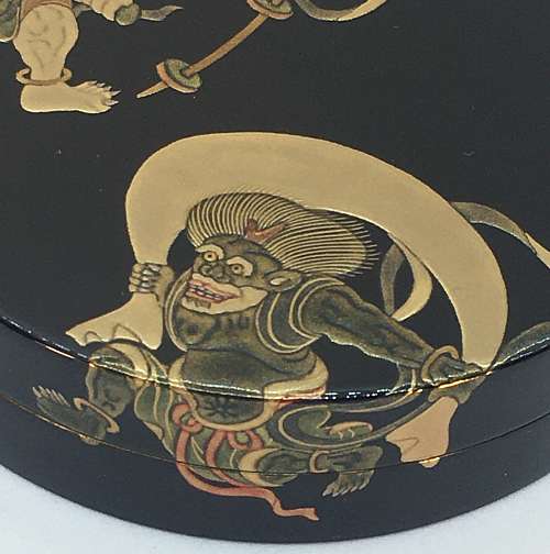 Item description : Wajima-nuri Kogo with stylish Makie works of Fujin & Raijn (wind and thunder gods)