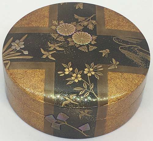 Item description : Wajima-nuri Kogo with stylish Makie works of Kacho (flower s and birds)
