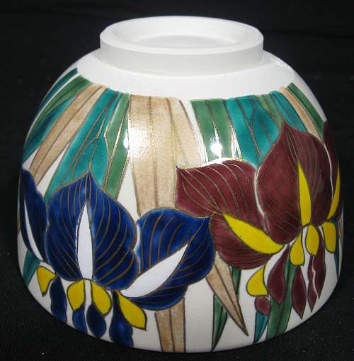 Item description : Kyoyaki tea bowl with elegant design of Shobu (Iris)