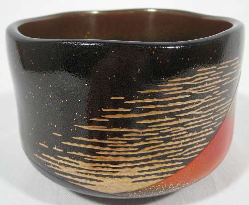 Urushi-nuri Tea Bowl With Aka-fuji Makie