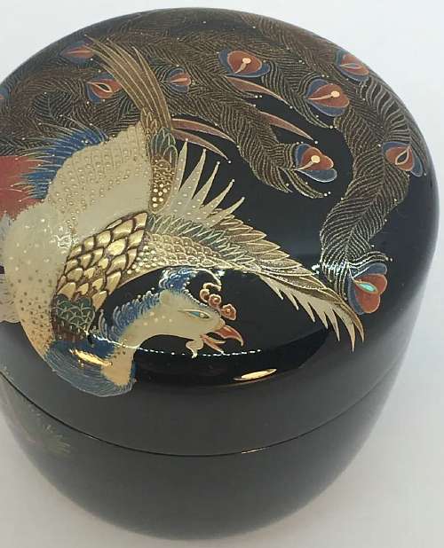 Item description : Wajima-nuri Oh tea caddy with beautiful Makie works of Ho-oh (phoenix) originally drawn by Mr Jyakuchu Ito Ito