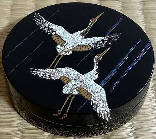 Item description : Collective Wajima-nuri Kogo with beautiful Makie works of Tsuru (crane)