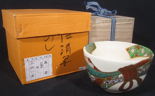 Item description : Kyoyaki tea bowl with beautiful design of Noshi (a gift wrapping paper)