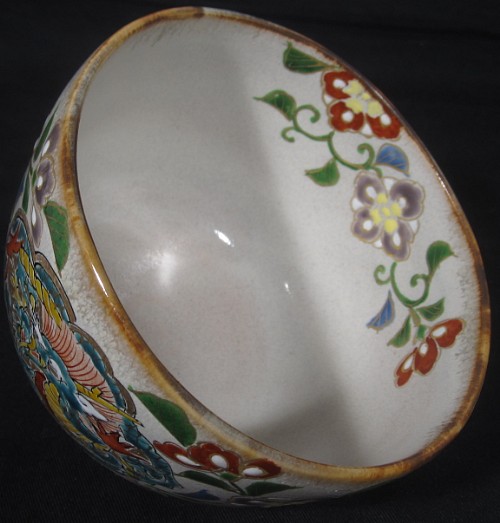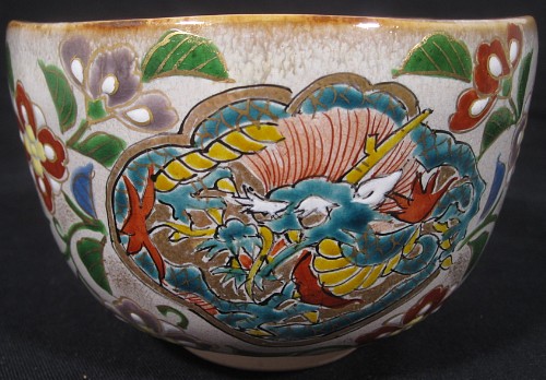 Item description : Kyoyaki tea bowl with Dragon in the colorful Karakusa design in Kenzan style