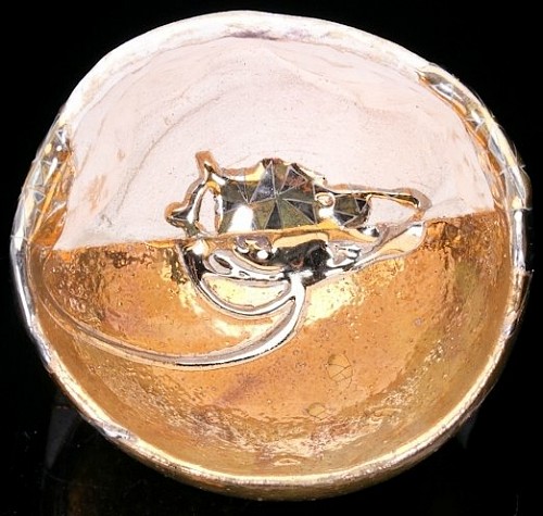 Artistic Tea Bowl With Kakewake With Gold Glaze