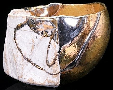 Item description : Artistic tea bowl with Kakewake (two tone design) with gold glaze