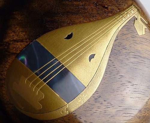 Item description : Wajima-nuri Kogo with fantastic Makie works of Biwa ( ) made of Kuro-kaki (black persimmon)